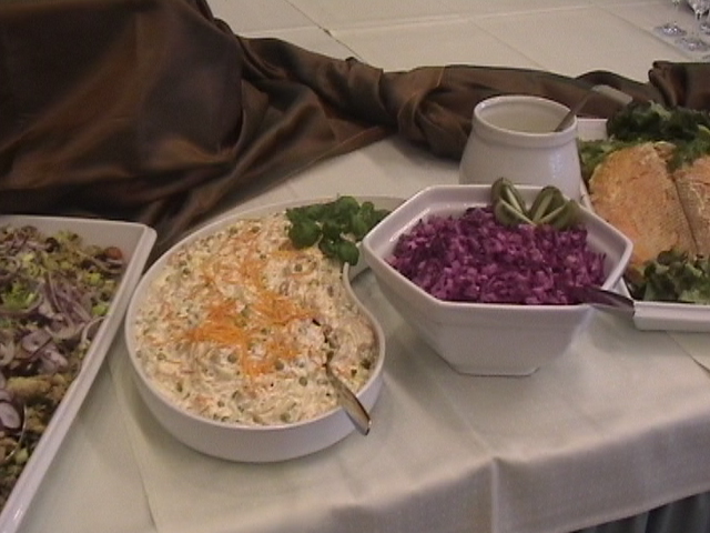 · Vihreää salaattia, kurkkua, tomaattia, salaatinkastiketta